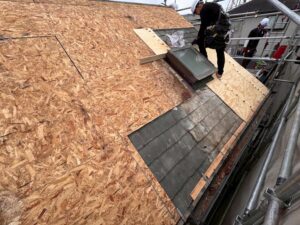 まずは腐食していた天窓まわりの下地を新しく造り直し、根本から屋根を整え、長期的に安心できる屋根改修に仕上げていきます。