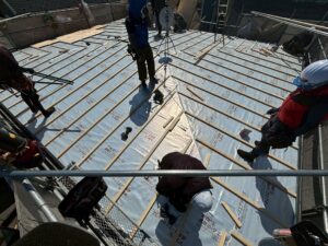遮熱シートを施工し、さらに既存屋根と新しい屋根の間に空気層を設けることで、熱を直接室内へ伝えにくい構造にしています。