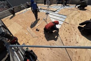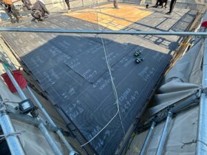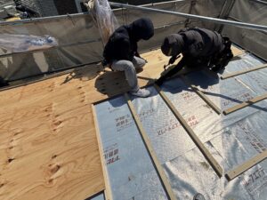 屋根材はタフビーム4号・5号を使用し、強度と通気性のバランスを確保。