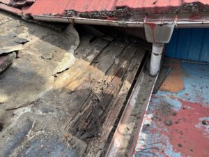 屋根を支える骨組み、野地板部分にも多く隙間ができています。