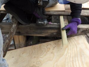 長く住んでいただけるよう、強度に問題がないかを入念に確認し、少しでも不安がある部分には添え木で固定、強度を回復しています。